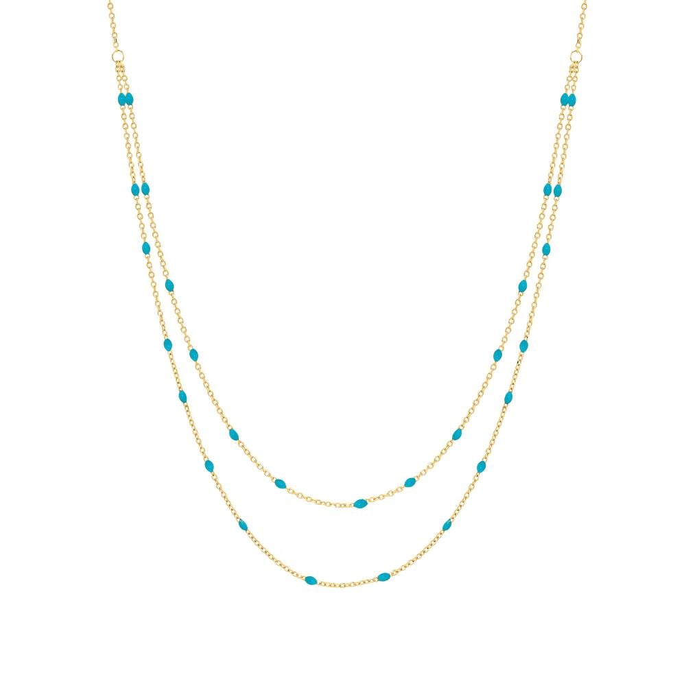 تميّزي بإطلالة متجددة مع قلادة الذهب بلون الميناء التي تجمع بين الأناقة والجرأة في تصميم واحد.