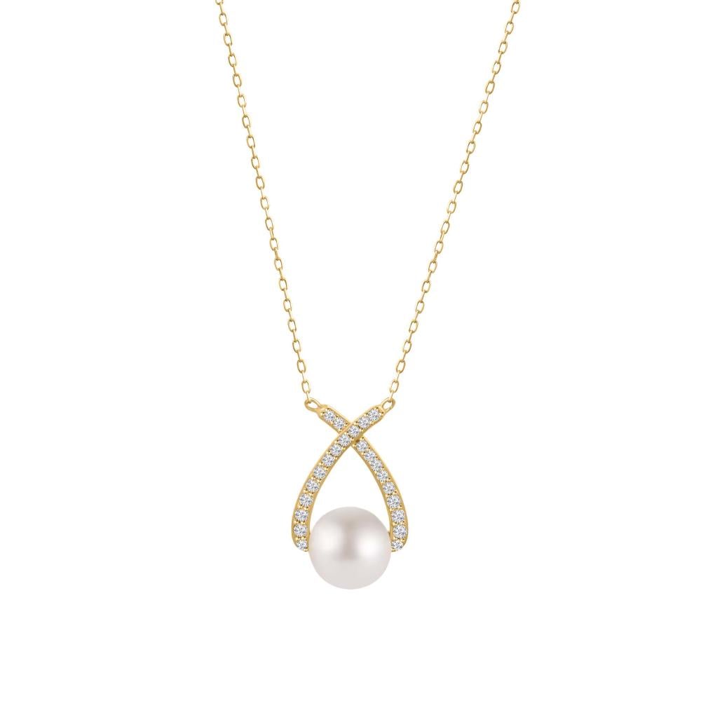 قلادة و حلق الاميرات بالذهب الاصفر مع لؤلؤ المياه العذبة