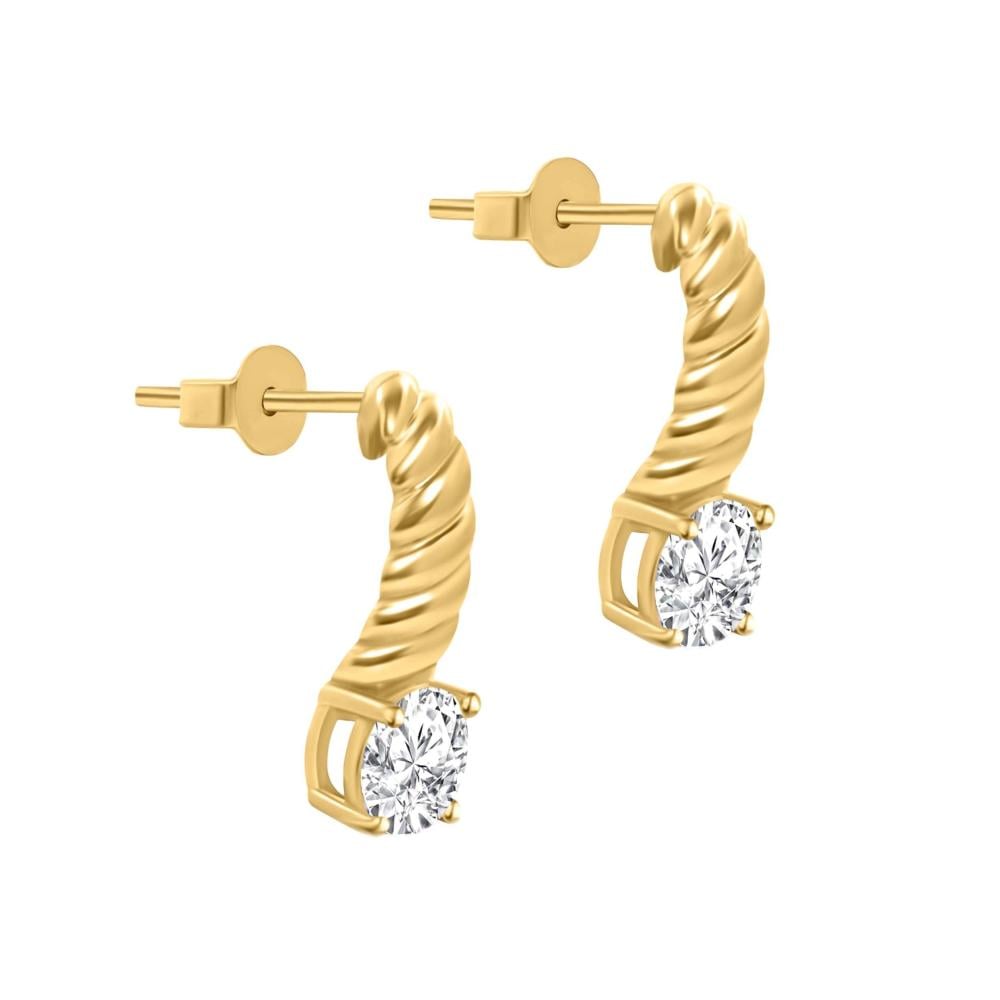 حلق ذهب امواج بفص السولتير