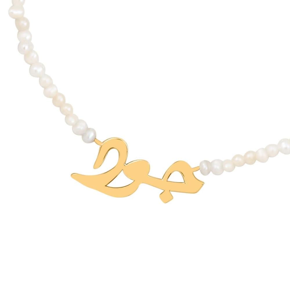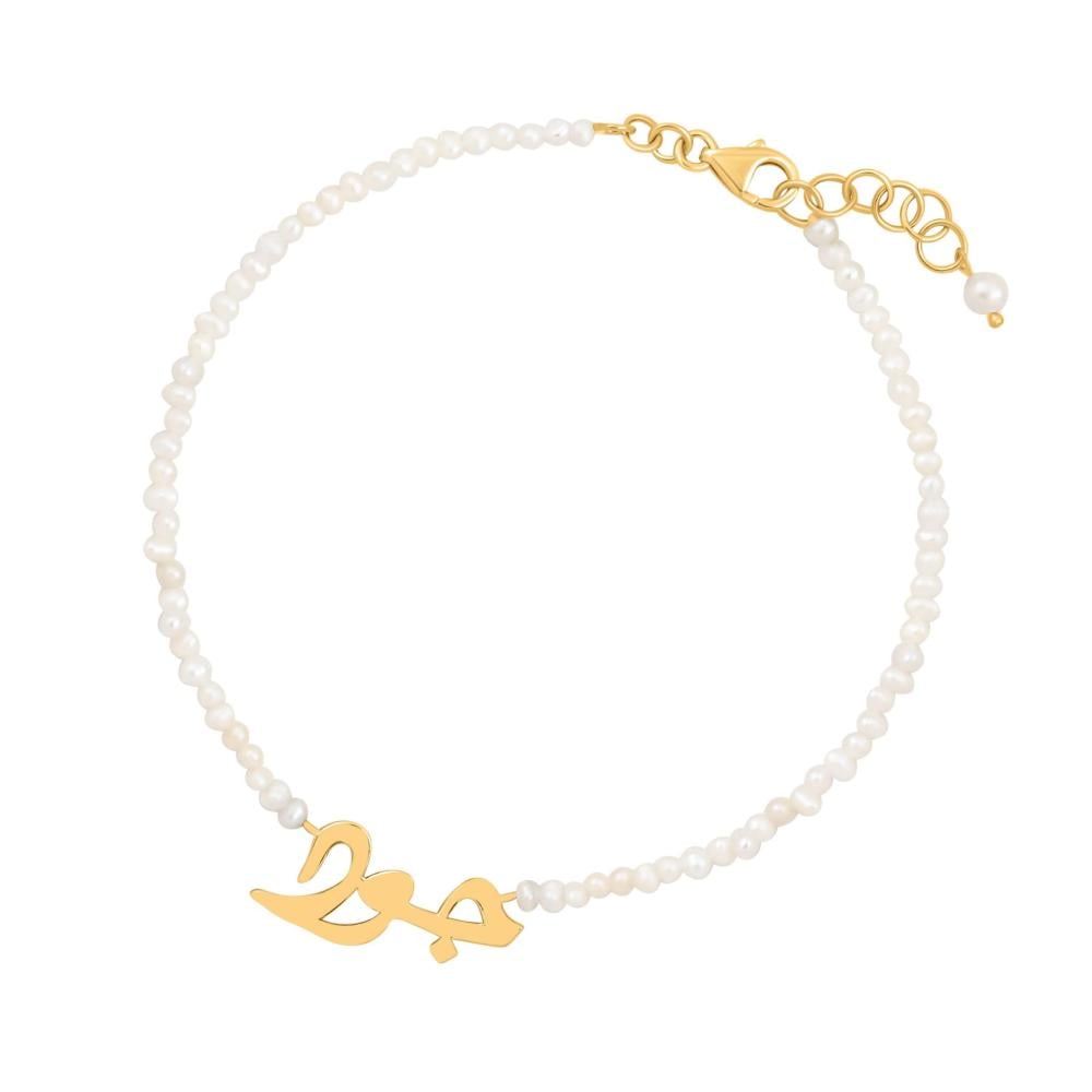 سوارة ذهب مع لؤلؤ المياه العذبة اسم عيار 18 او 21 بوزن : من 1.1 الى 1.3 جم تقريباً