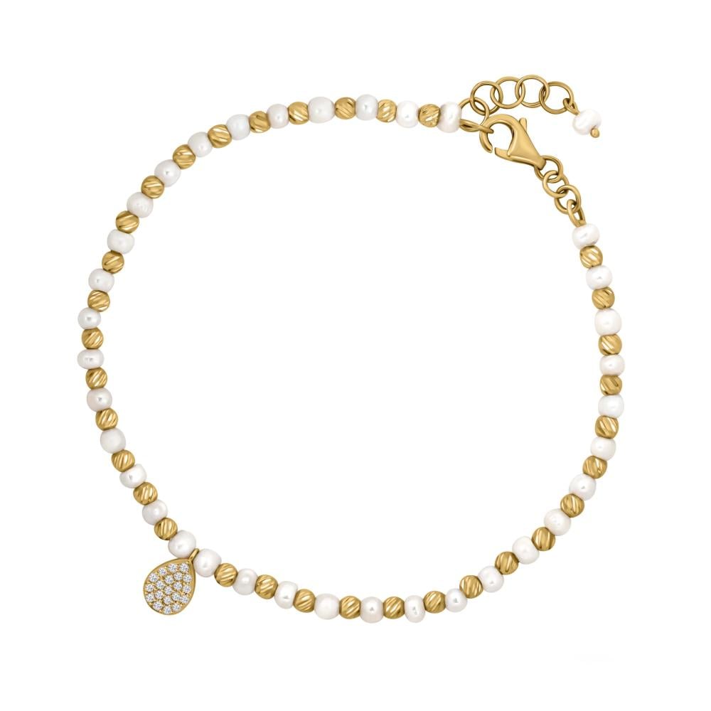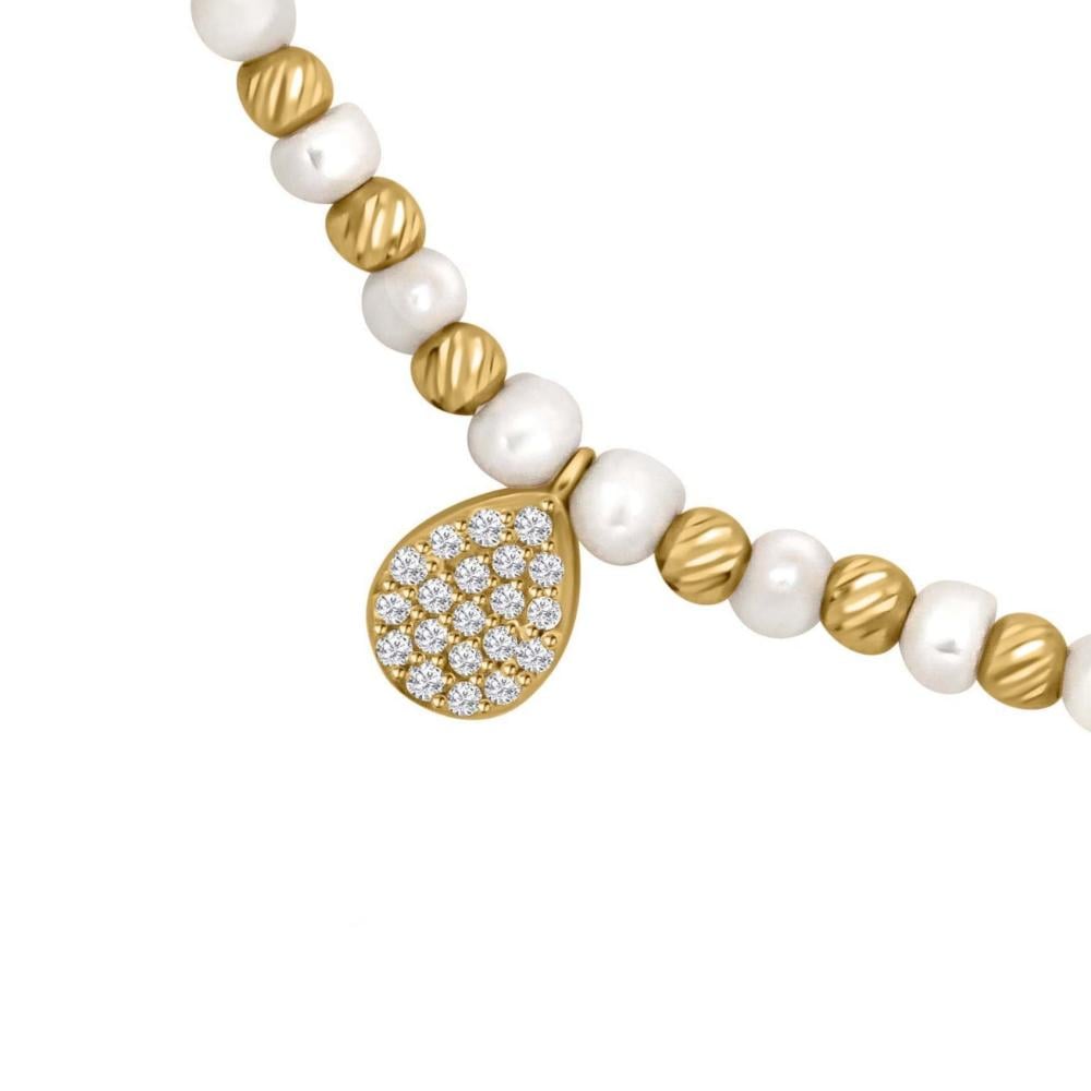 سوارة ذهب ولؤلؤ المياه العذبة بتصميم الدمعة المميز