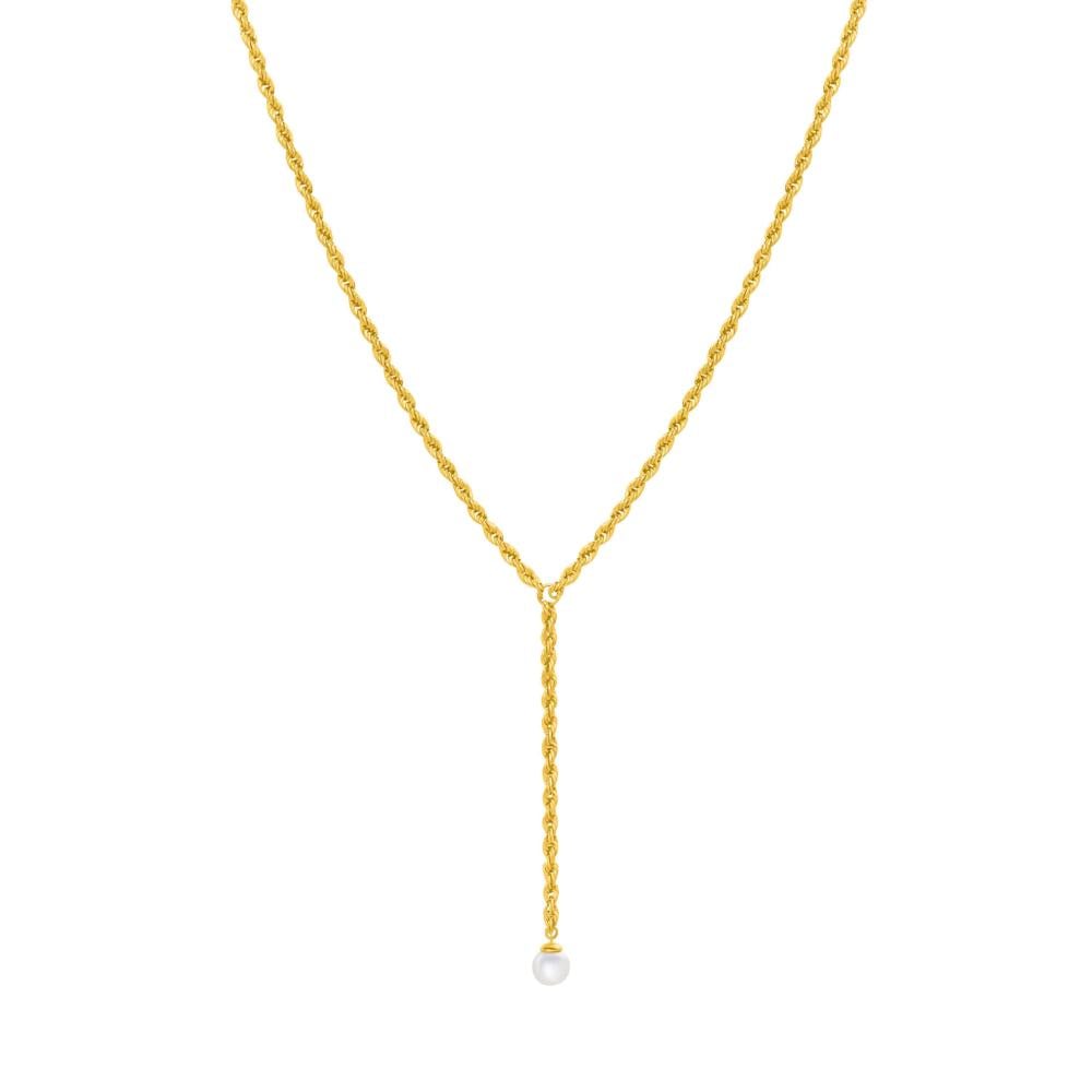 سلسلة مبرومة تلفّ بحنان، وتنتهي بحبة لؤلؤ ناعمة كأنها نقطة ختام لكل تفاصيلك الجميلة.