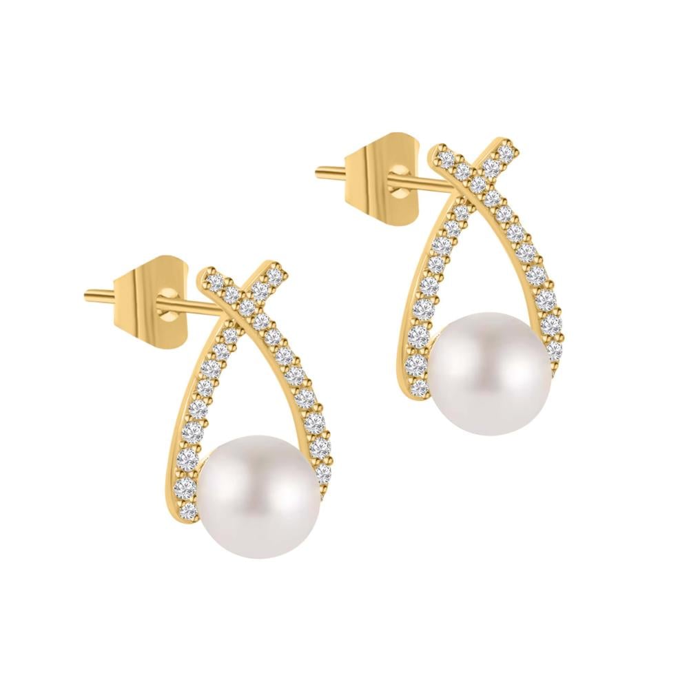 حلق ذهب عيار 18مع لؤلؤ المياه العذبة بوزن 1.25 جم تقريباً