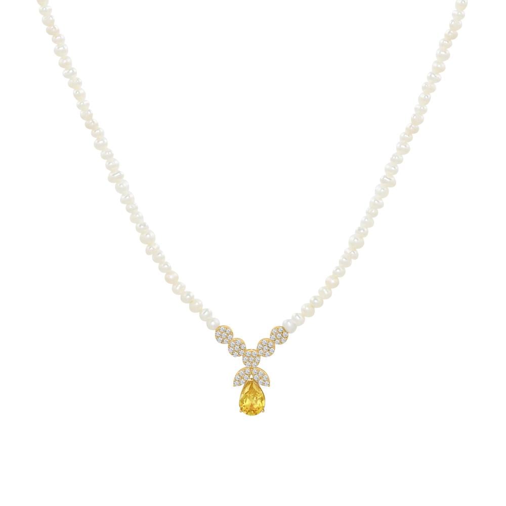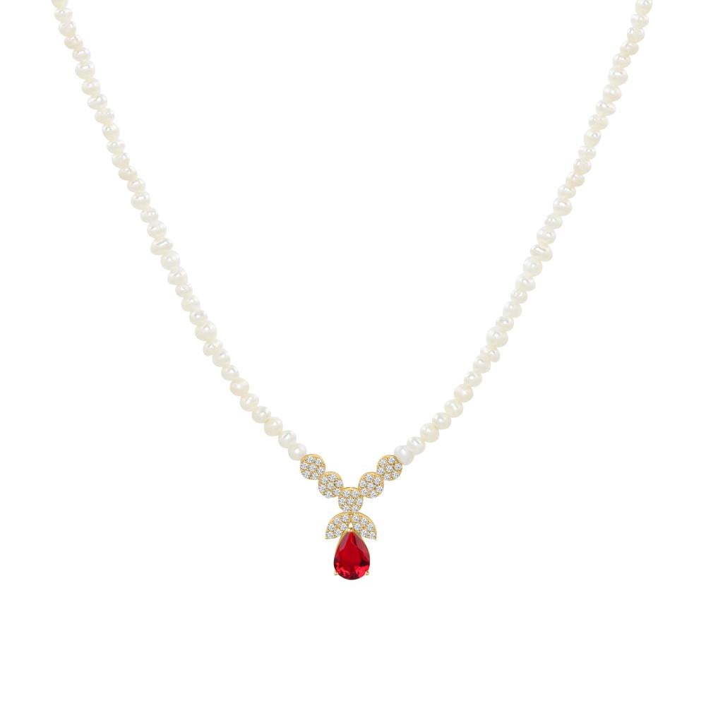 عقد ذهب عيار 18 مع لؤلؤ المياه العذبة بوزن 2.02 جم تقريباً
