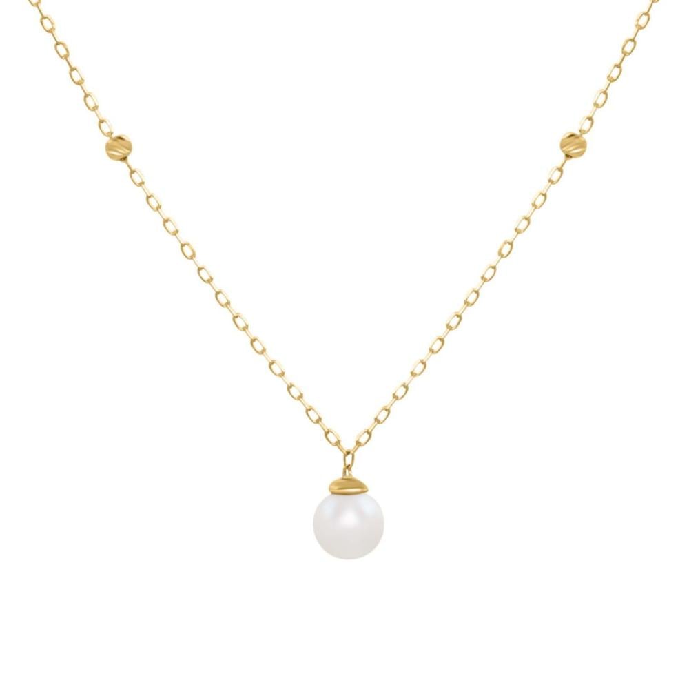 عقد ذهب بسلسال مميز بكور الليزر من الذهب الأصفر مع إضافة لؤلؤ المياه العذبة