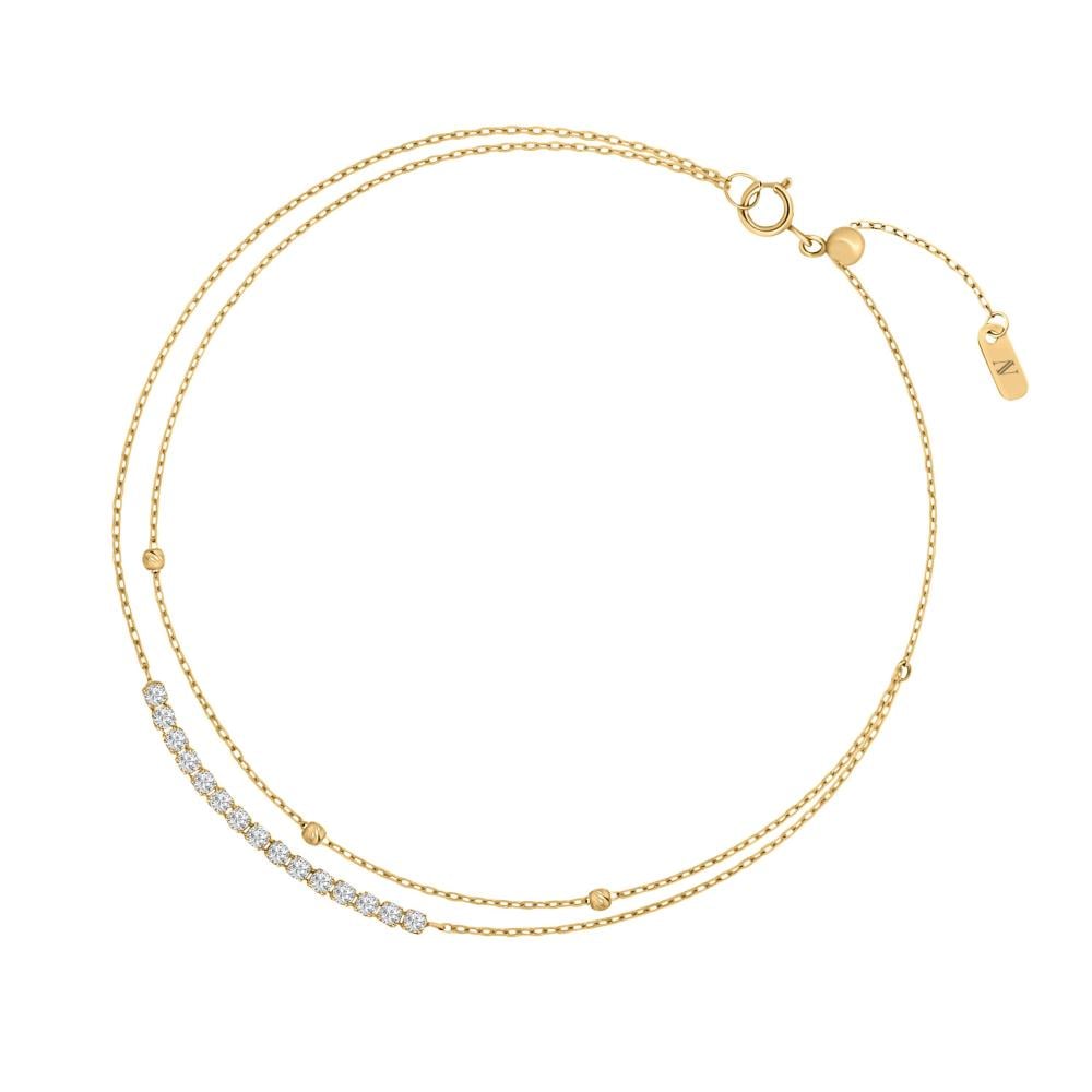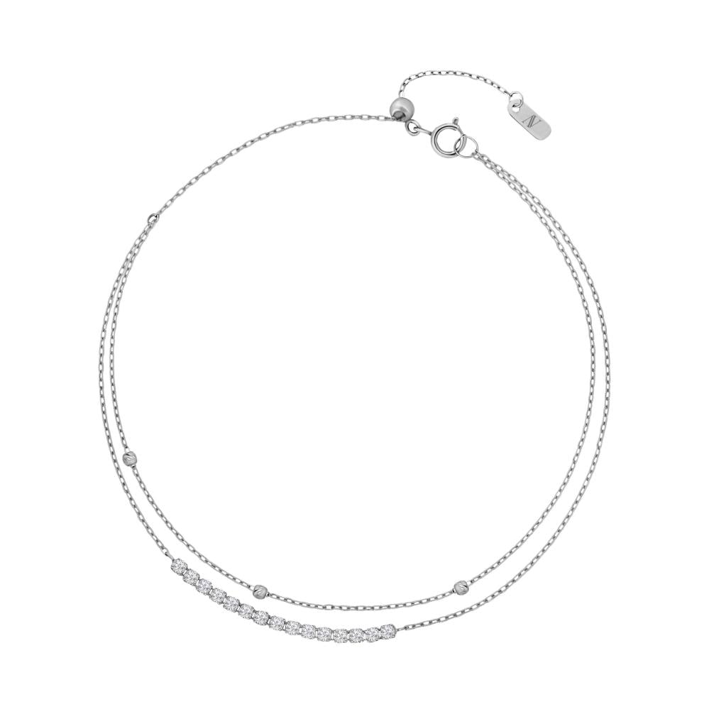 سوارة نغم .. حكاية تفاصيل تمشي ورا بعض… كور ناعمة ولمعة تنس، كلها بذهب أبيض يلفّ يدك بذوق راقٍ وهدوء يلفت