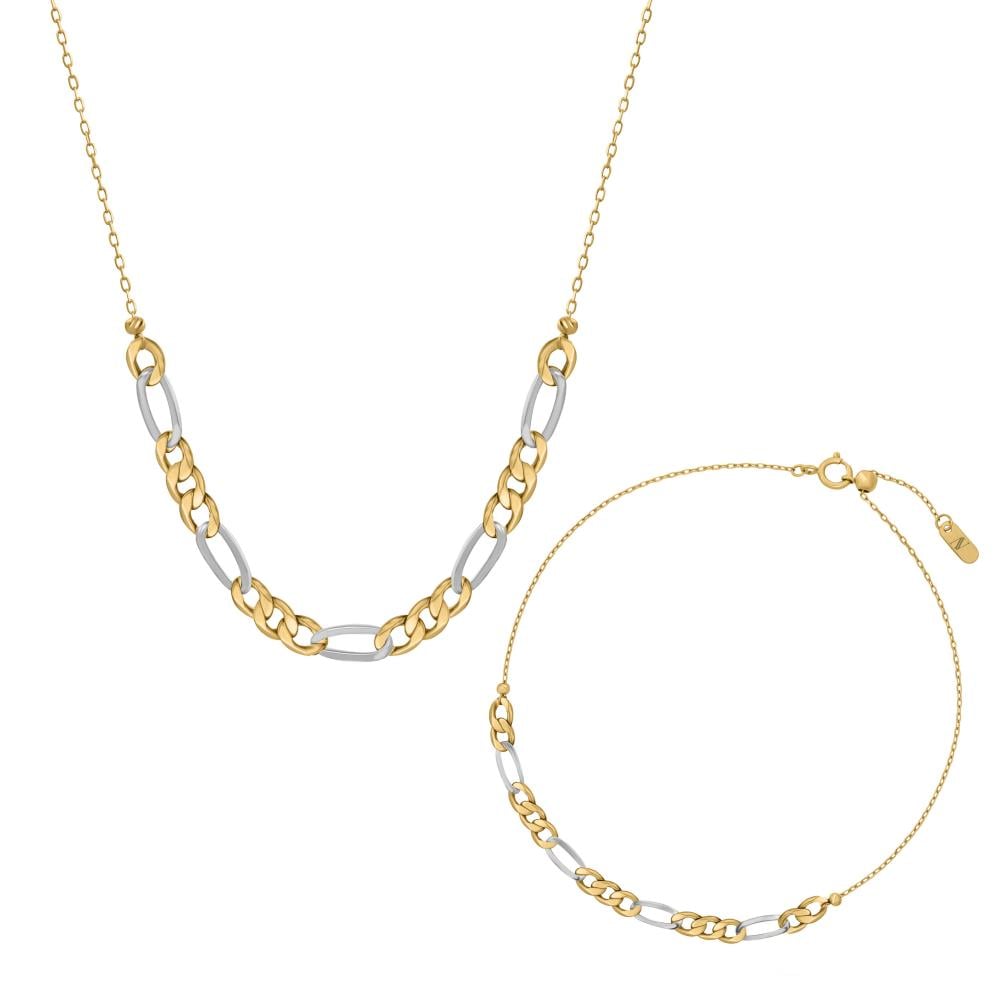 قلادة و سوارة ذهب بتصميم الجنزير المكس