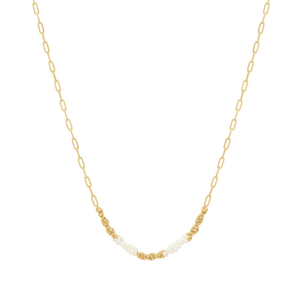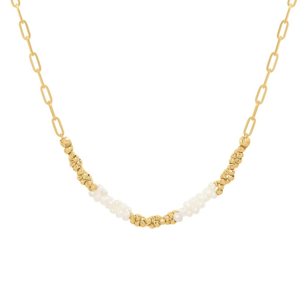 قلادة ذهب بتصميم الجنزير ولؤلؤ المياه العذبة