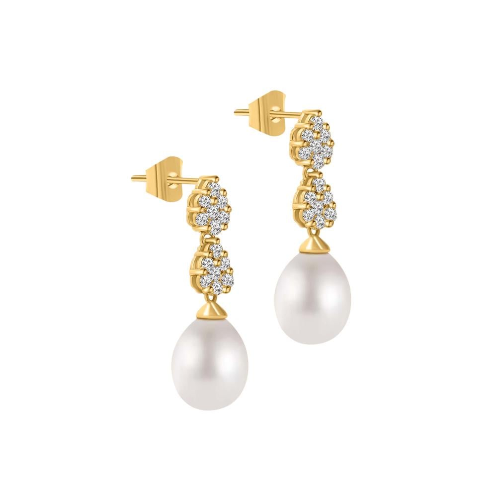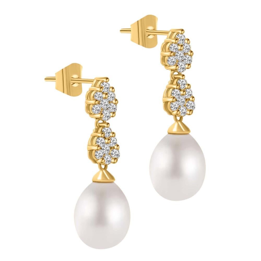 حلق ذهب عيار 18مع لؤلؤ المياه العذبة بوزن 1.44 جم تقريباً