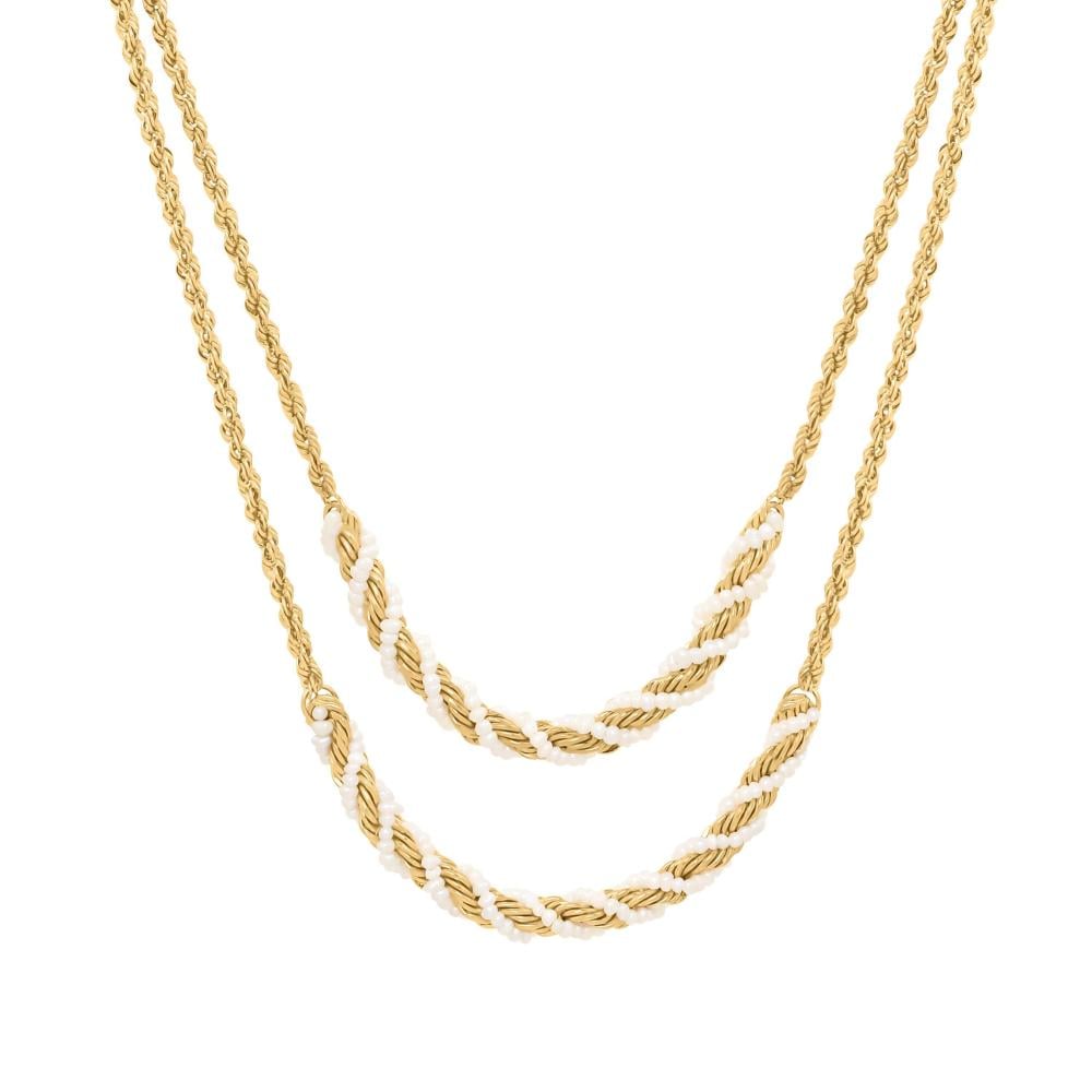 - عقد ذهب عيار 18 مع لؤلؤ المياه العذبة بوزن 2.45 جم تقريباً