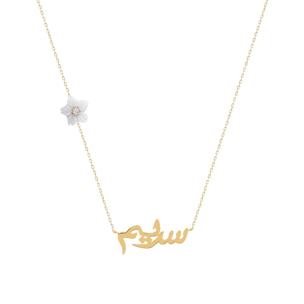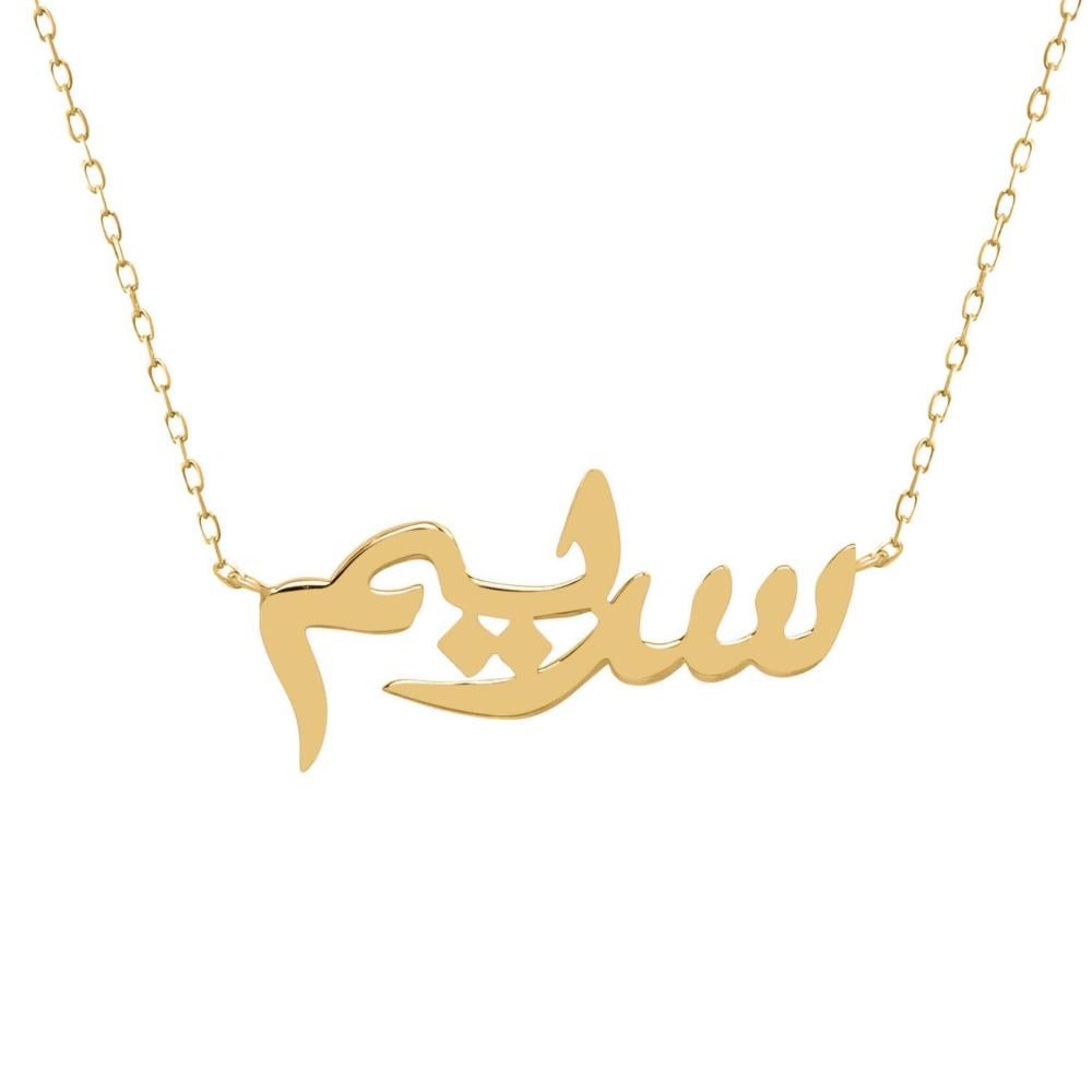قلادة ذهب اسم عيار 18 او 21 بوزن : من 1.4 الى 1.6 جم تقريباً