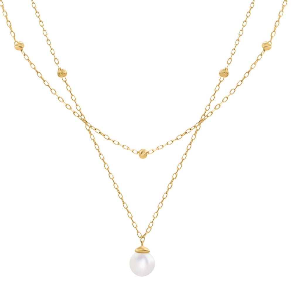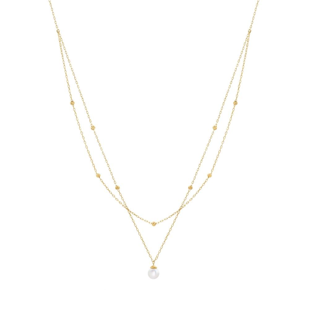سلسال دورين ناعم، يتوسطه لؤلؤة من مياه عذبة، لمعتها هادية بس تسرق النظرة. يليق بالمناسبات الخفيفة ويكمل طلتك بذوق راقٍ وبسيط