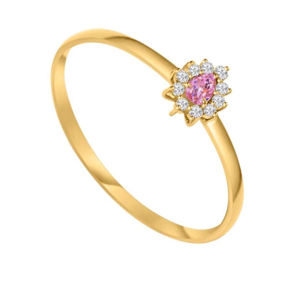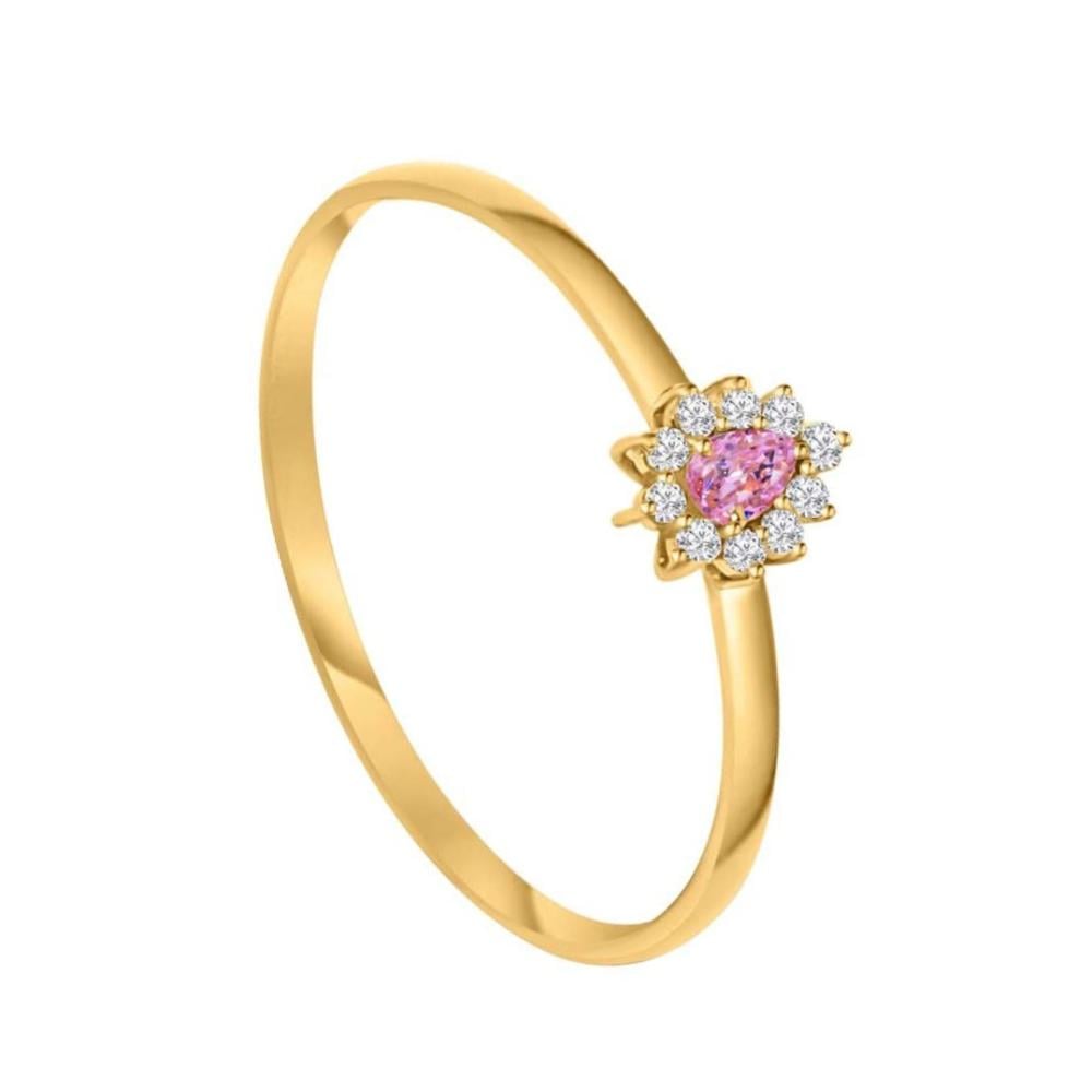 خاتم ذهب مزين بحجر وردي وفصوص الزركون