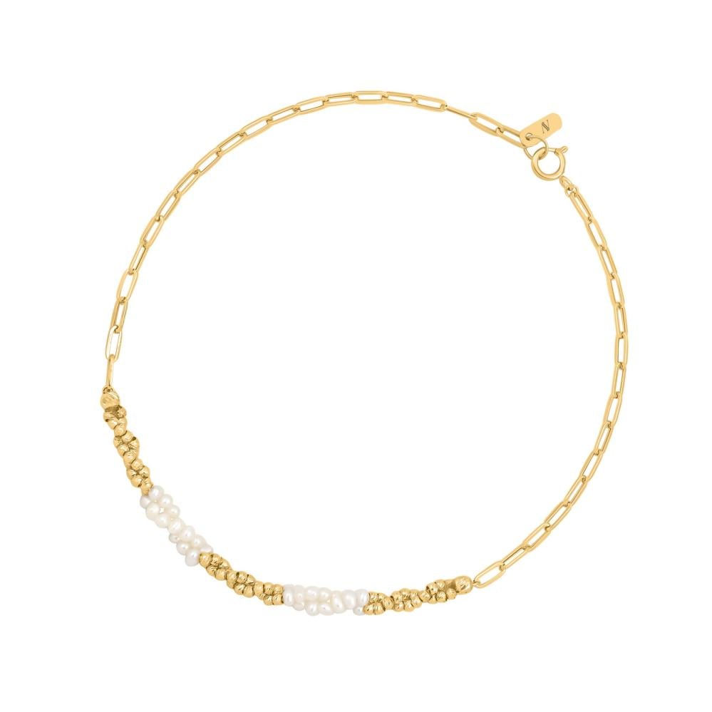 سوارة ذهب بتصميم الجنزير ولؤلؤ المياه العذبة