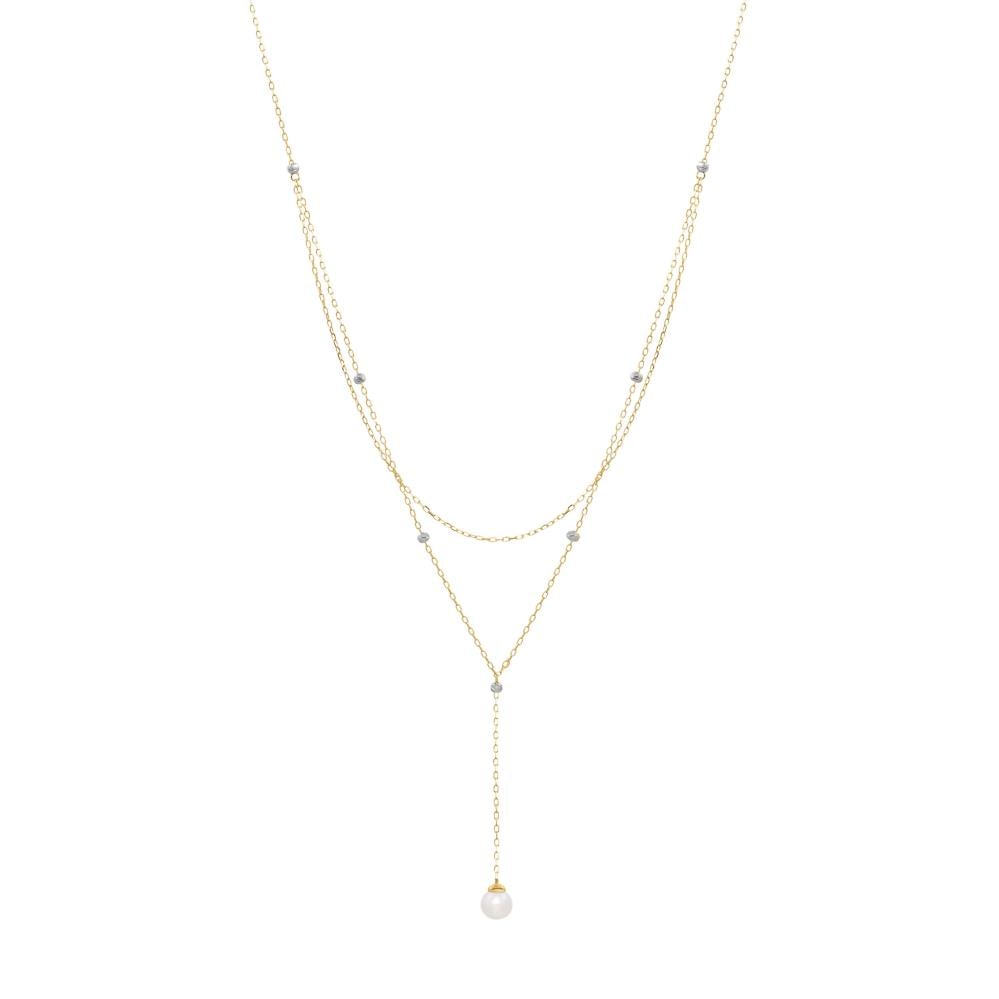 عقد ذهب مزين بكور الليزر و لؤلؤ المياه العذبة